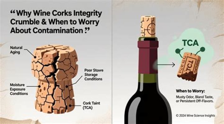 Wine corks can deteriorate with age; becoming dry and crumbly. They can then fail to seal the bottle so when storing wine it is best to lay the bottles on their side to ensure the cork is in contact with the wine to help prevent it from drying out.