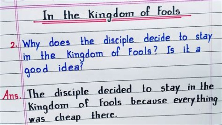 24 related questions foundWhy did the disciple decide to stay in the Kingdom of Fools was this a good idea what does this reveal about his character?