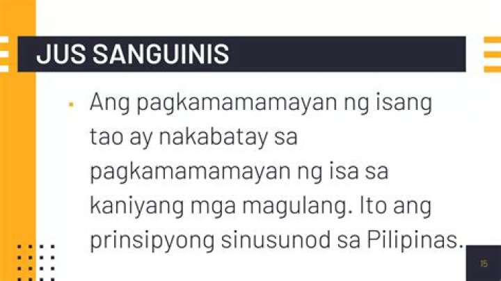 : a rule that a child's citizenship is determined by its parents' citizenship.