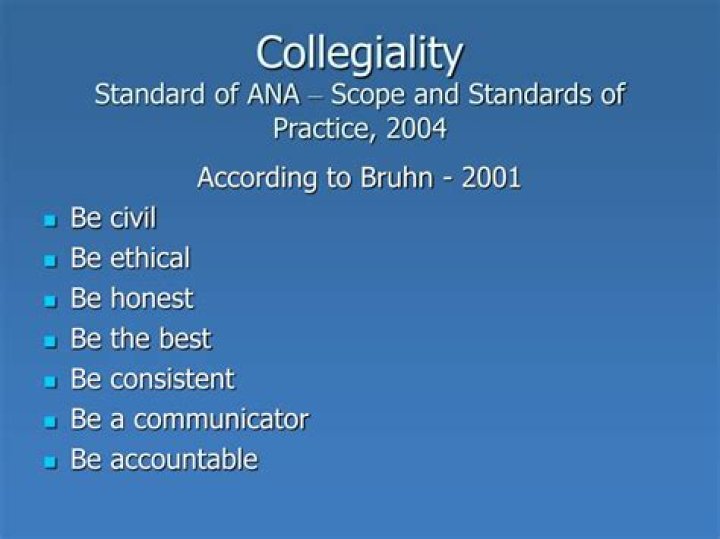 Collegiality – the relationships of colleagues working together – provides a framework in which professionals are expected to hold each other accountable for the care that is given, and for its congruence with local and national standards (Hansen, 1995).