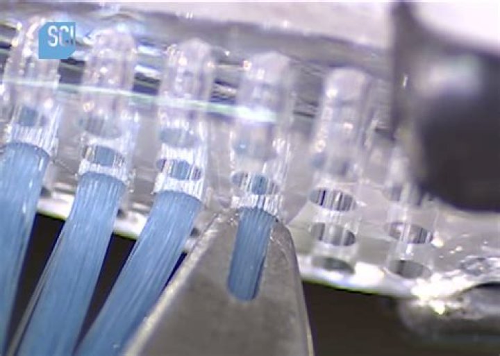 The injection molding process involves forcing melted plastic pellets into a toothbrush mold and cooling it. The handle, head, and even the small holes are automatically formed. toothbrush that signaled the user to buy a new brush.