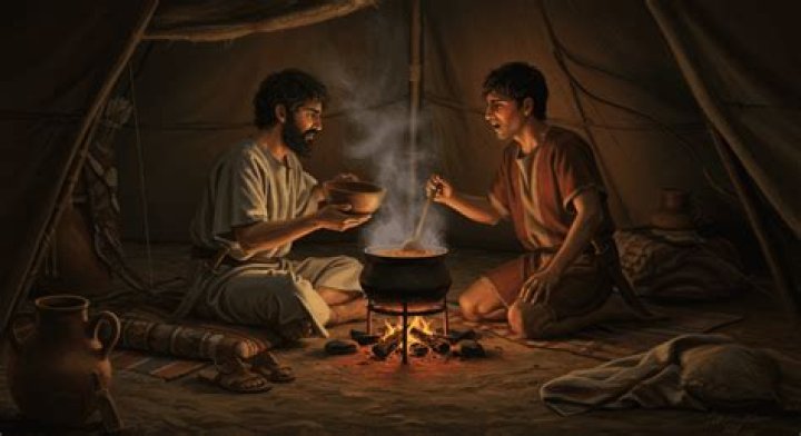 But Esau traded his birthright (inheritance) to his younger brother, Jacob, for a “mess of pottage” (a meal of stew) when he was too hungry to consider what he was throwing away. Jacob also cheated Esau out of their blind father's deathbed blessing by impersonating him, a deceit prompted by their mother, Rebecca.