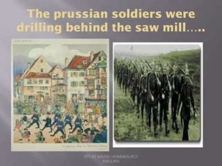 2) What is the significance of the terms 'the Prussian soldiers were drilling', 'draft', 'lost battles'? Ans–They all remind of the Prussian invasion of France & the soldiers were getting military exercises in & around the town to highlight the loss of political freedom & force their presence on the people of Alsace.