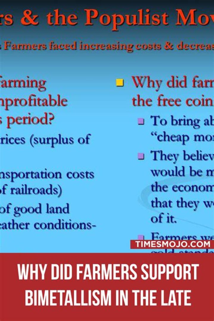 This could lead to inflation, where prices rise (good for farmers), value of money decreases, and more people have money. Those who favored bimetallism, usually farmers of laborers. They wanted bimetallism b/c their products would be sold at higher prices. ... -Fewer people have money, so the rich get richer.
