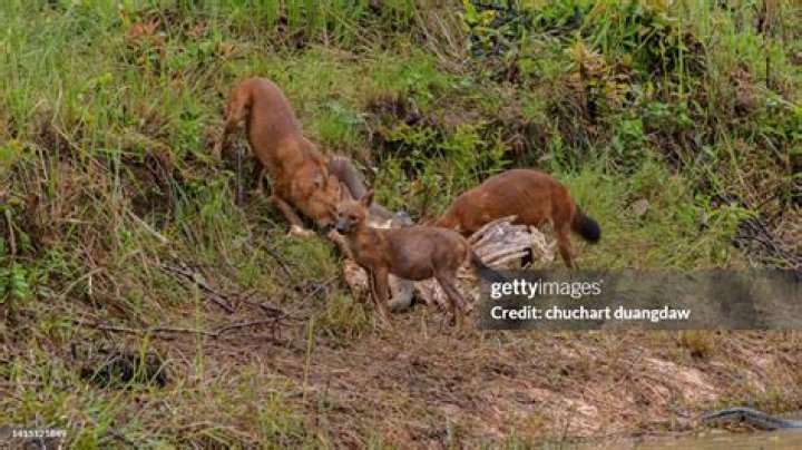 Dog Pack Eats Deer Carcass - Alpha Dog Maintains Order