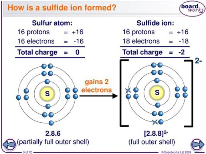 The valence shell (the 3s and 3p sublevels) contains six electrons, but it needs eight to become stable. ... Therefore a sulfur atom will gain two electrons to form the sulfide anion with a charge of 2− , with the symbol S2− .