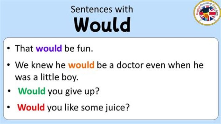 Would is used to indicate what could potentially happen in the future or when giving advice or when making a request. An example of would is when you might get a good grade if you study. An example of would is when you ask someone to pass the carrots.